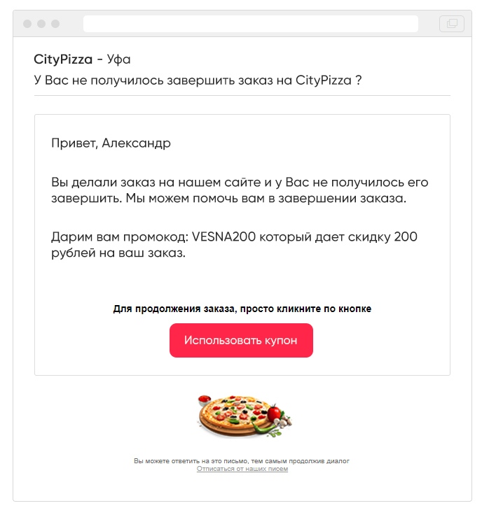 Емейл — это ценный ресурс, который позволяет оставаться с клиентом на связи и подогревать его интерес (и, в этом случае, аппетит).
