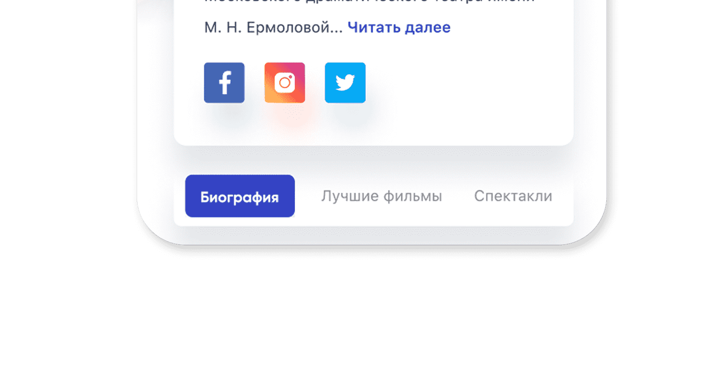Тем, кто часто смотрел фильмы с Александром Петровым, показывали трейлеры и рекомендации с фокусом на актера. У тех, кто предпочитает фильмы с женскими персонажами, в трейлере и рекомендациях были кадры с участием женщин. Чтобы собирать эти данные я сделал карточку актера, где можно почитать биографию, посмотреть лучшие фильмы, или купить билет на спектакль в котором он участвует. Так же добавлены ссылки на социальные сети знаменитостей.