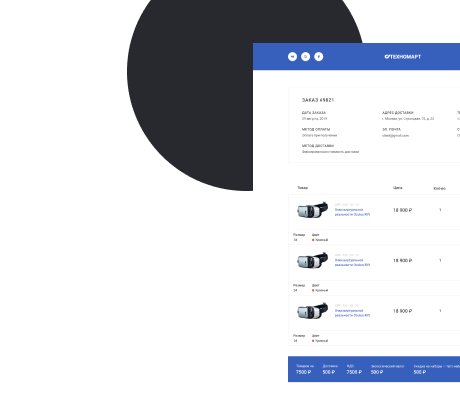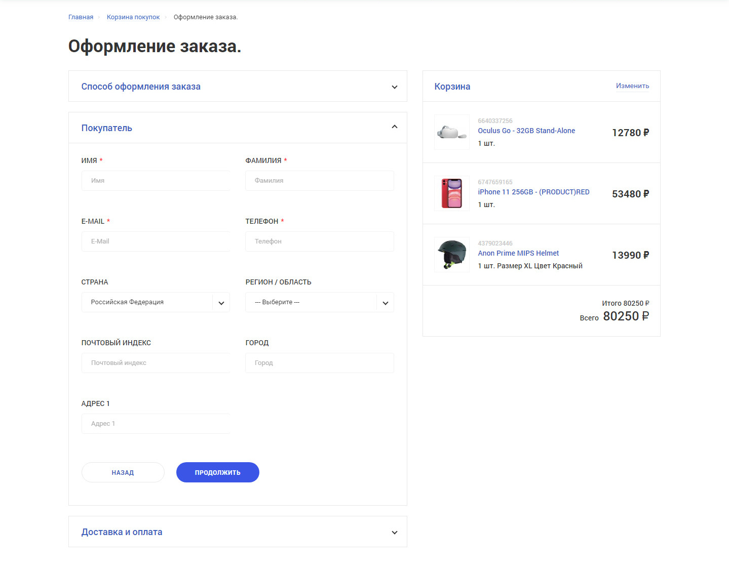 с поддержкой опций и стандартной регистрацией заказов в панели управления;