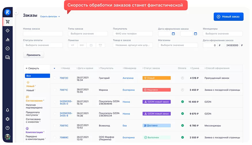 OMS — Order Management System — сама распределяет заказы между операторами, ставит задачи, оповещает клиентов и меняет статусы.